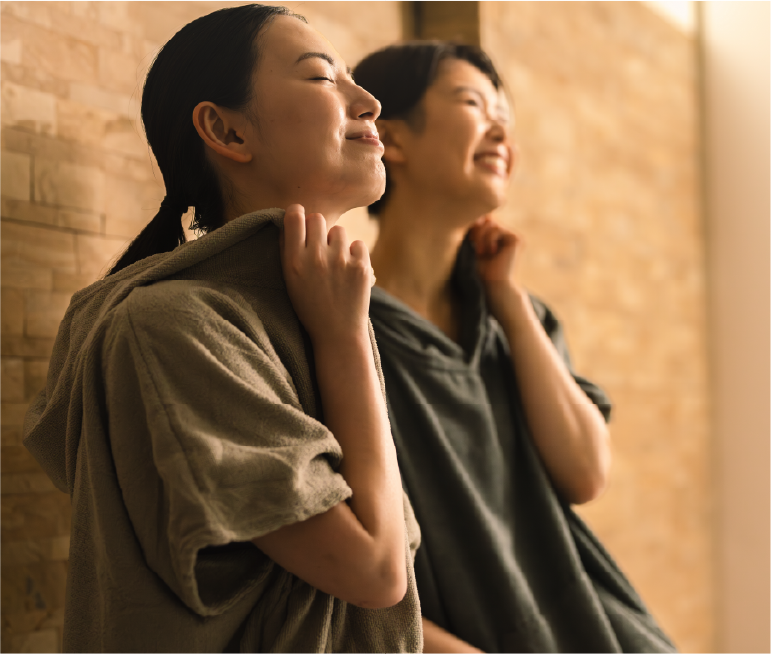 約40℃でアロマを加えた低温サウナで、気持ちよくウォーミングアップ。