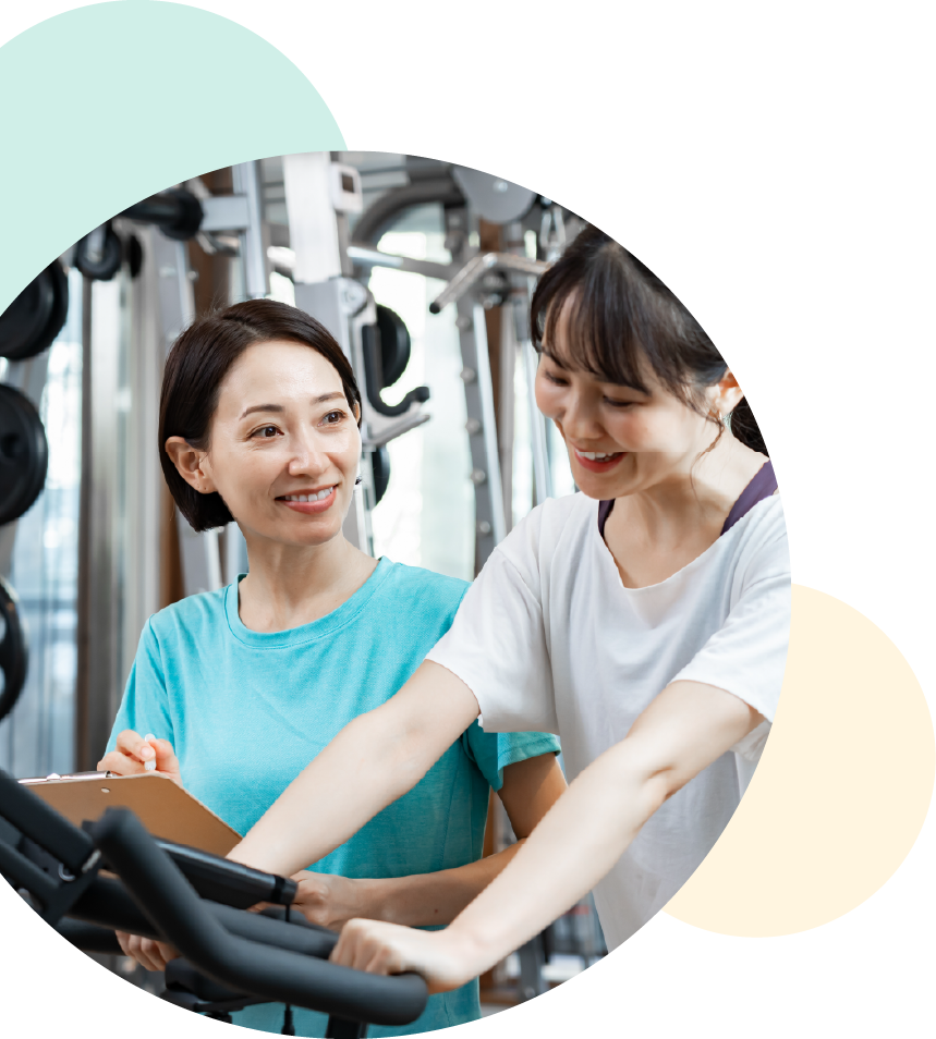 当ジムをご利用されている方の多くが、運動初心者からのスタートです。無理のないメニューからご案内しますので、「久しぶりの運動で不安…」という方も安心してご利用いただけます。