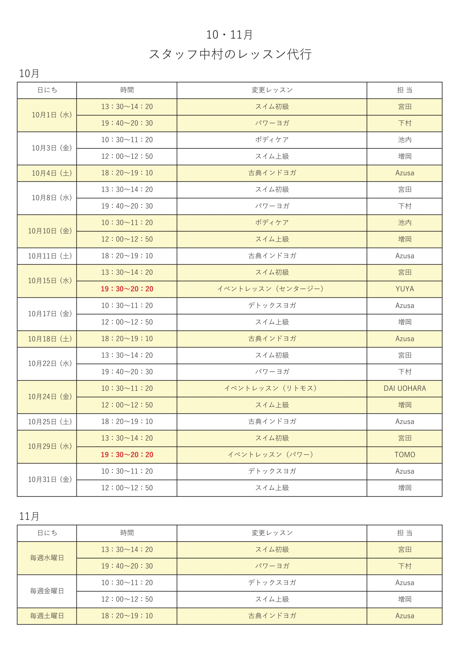News ニュース 料金・営業時間 入会について 入会案内 再入会登録 サポートについて 施設案内 レッスン・プログラム スタッフ紹介 お客様の声 ブログ 無料体験お申込み 会員様用レッスン予約 MENU MENU 料金・営業時間 入会案内 再入会登録 サポートについて 施設案内 レッスン・プログラム スタッフ紹介 アクセス お客様の声 ブログ お問い合わせ レッスンスケジュール 会員Webシステム ※レッスン予約などについてはこちら SOCIAL NETWORK INSTAGRAM FACEBOOK YouTube 平 日 10:00〜23:00 土曜日 10:00〜20:00 日・祝 10:00〜18:00 定休日 毎週木曜日 〒475-0021 愛知県半田市州の崎町2-36 亀崎STゴルフ内 0569-20-1321 お知らせ 2025/09/15 【10月・11月のレッスンについて】10月4日更新 10/11(土) 17:00~17:50 「Group fight」 担当:阪口 → 「Group POWER」 担当:樋口 ※内容変更 10/4(土) 17:00~17:50 「Group fight」 担当:阪口 → 「RHYTHM DANCE」 担当:MAKOTO ※内容変更 スタッフ中村が担当するレッスンの代行を一覧にまとめましたので、ご確認をお願いいたします。 大変ご迷惑をおかけしますが、よろしくお願いいたします。 ◀ 一覧へ戻る ◀ 前の記事へ 次の記事へ ▶